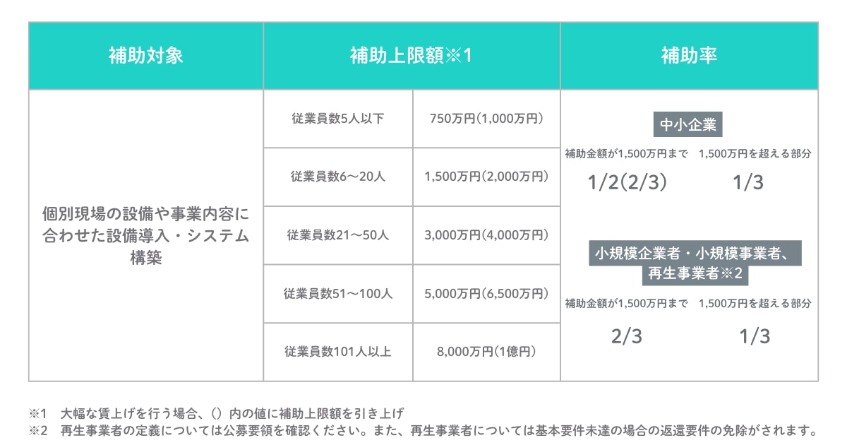 複数設備の組み合わせでオーダーメイド設備とみなされるため、幅広い設備投資が対象