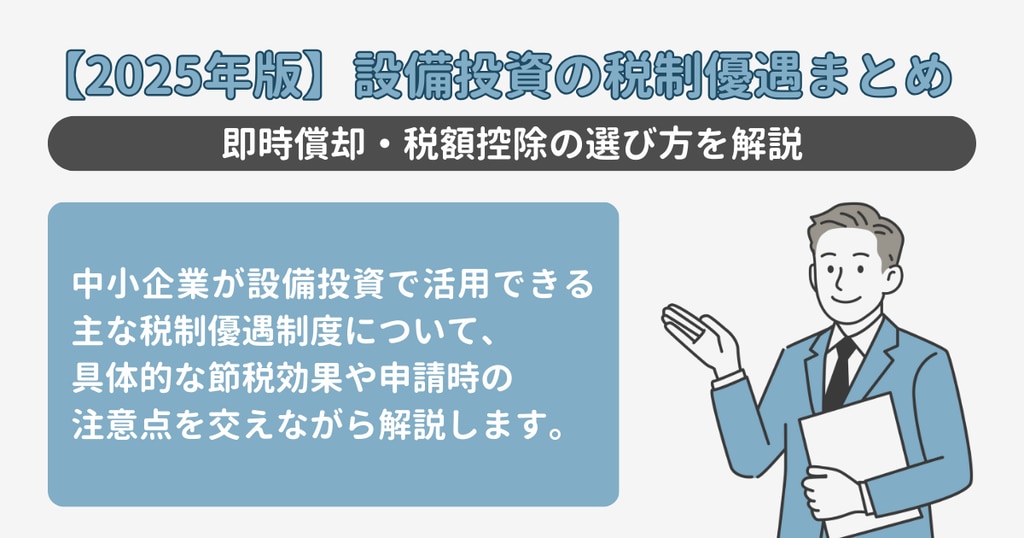 記事を見る設備投資で使える税制優遇制度(即時償却・税額控除)を解説。固定資産税の軽減要件や「認定前の取得はNG」といった申請時の重要ポイントも網羅しました。