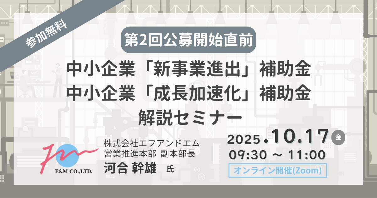第2回公募が開始&予定されている「中小企業新事業創出補助金」と「中小企業成長加速化補助金」の解説セミナーを開催します。