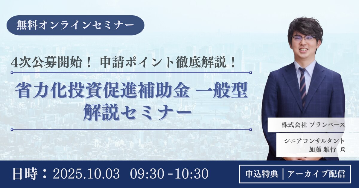 先日、第4回公募が公開された省力化投資補助金 一般型の解説セミナーを開催します。