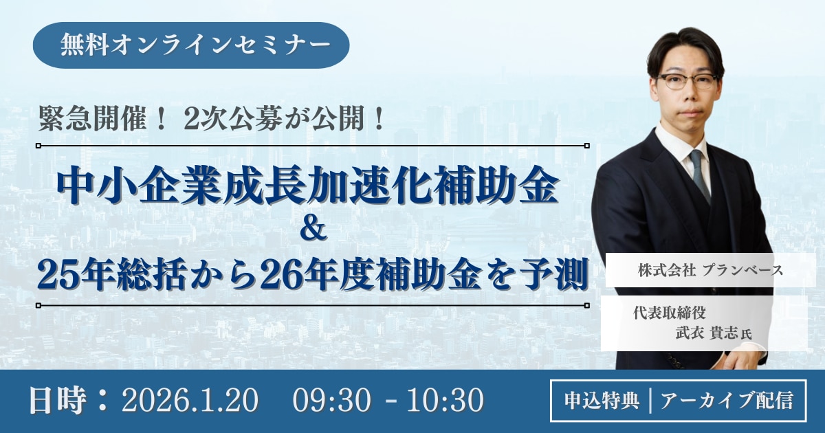第2次公募が公開された中小企業成長加速化補助金の解説セミナーです。